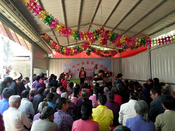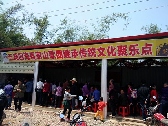 聚乐点筹建者钟志平告诉笔者,他家住在桂岭镇山区村莲花村,莲花村民千百年来都有唱山歌的习惯和爱好,不管是上山砍柴,还是下田耕作,人们都会编上几首山歌相互唱和。在山区山歌文化的熏陶下,他从小就开始喜欢唱山歌。他家传统的山歌没有曲谱,都是祖辈口耳相传传下来的,说不定每首山歌都有百十年历史了。“桂岭很多人都喜欢唱山歌,想到这些山歌爱好者们平时要对唱山歌没有场地,所以我发起筹建了这个‘五湖四海客家山歌团继承传统文化聚乐点’,方便大家展示交流,让山歌文化弘扬传承、发扬光大。”当笔者问起钟志平为什么要筹建这个“五湖四海客家山歌团继承传统文化聚乐点”时,钟志平道出了初衷。
